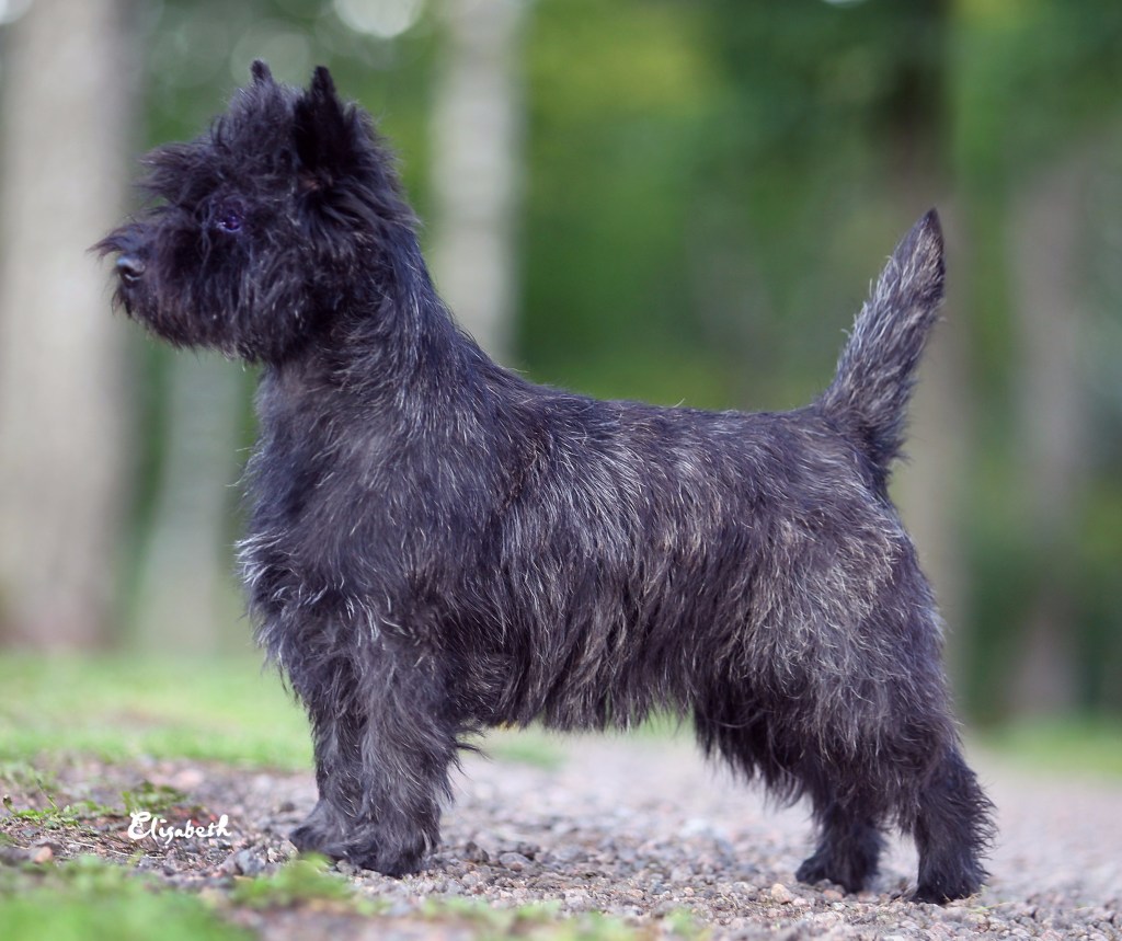 Bra storlek. Fint feminint huvud. Korrekt bett, öron och ögon. Lite kort hals. Bra skuldra och överarm. Passande benstomme. Tjocka fötter. Stark rygg. Goda vinklar bak. Bra buren och ansatt svans. Utmärkt sträv päls. Fint presenterad. Rör sig bra runt om. Utmärkt temperament.